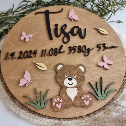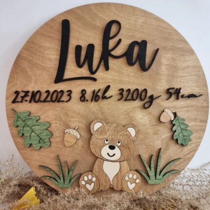 Personalizirana tabla medvedek Debelina: 6mm Izdelana iz kakovostnega lesa, idealna za dekoracijo in trajen spomin. Opozorilo: Izdelek ni igrača, namenjen je izključno dekoraciji. Z njim ravnajte previdno. Les je naravni materijal zato barve in izdelki lahko odstopajo od izdelkov na sliki in niso razlog za reklamacijo.
