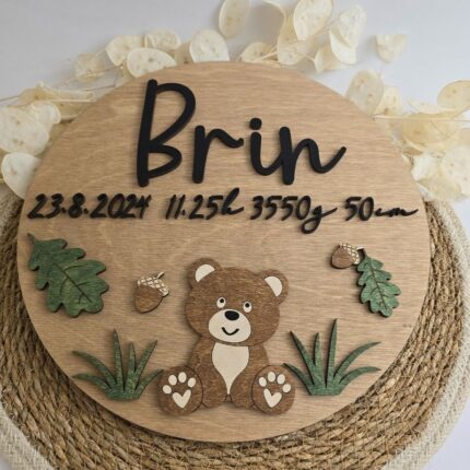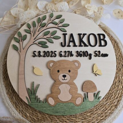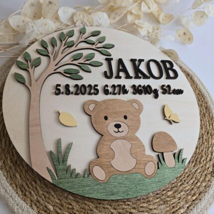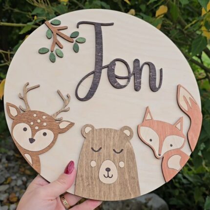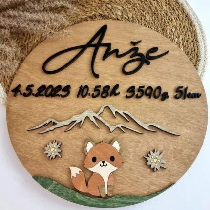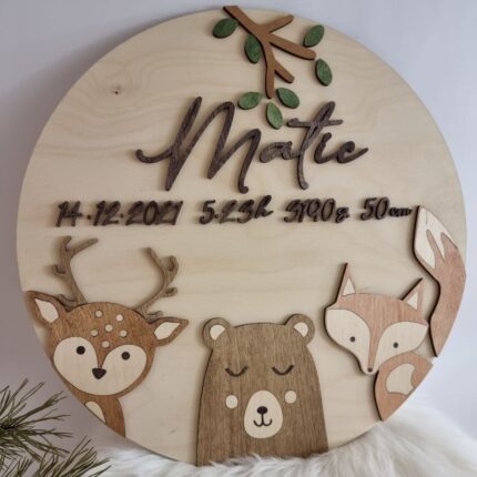 Personalizirana tabla gozdne živali Debelina: 6mm Izdelana iz kakovostnega lesa, idealna za dekoracijo in trajen spomin. Opozorilo: Izdelek ni igrača, namenjen je izključno dekoraciji. Z njim ravnajte previdno. Les je naravni materijal zato barve in izdelki lahko odstopajo od izdelkov na sliki in niso razlog za reklamacijo. Čas izdelave: 5 – 10 delovnih dni