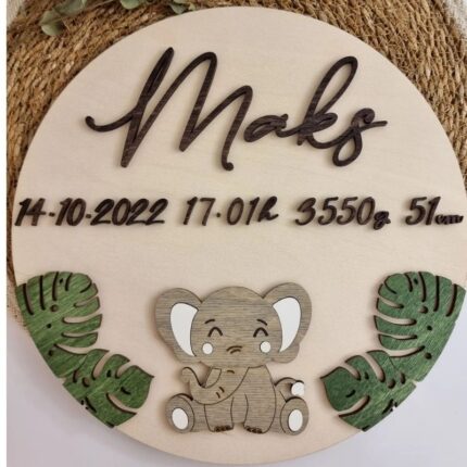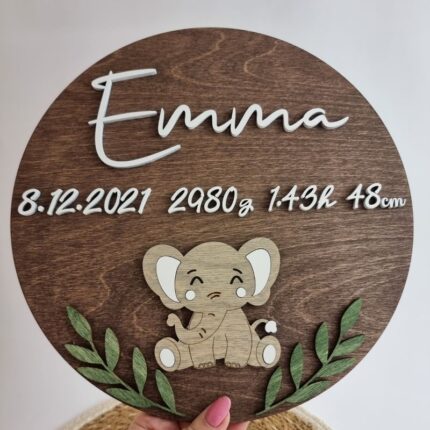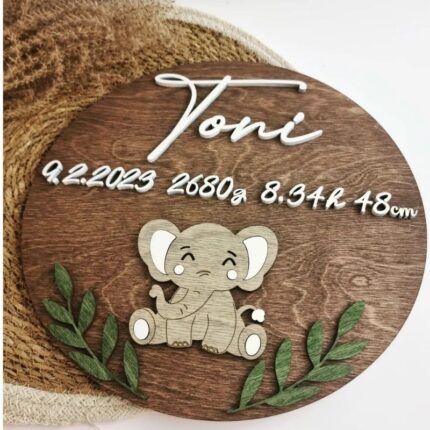Personalizirana tabla slonček Debelina: 6mm Izdelana iz kakovostnega lesa, idealna za dekoracijo in trajen spomin. Opozorilo: Izdelek ni igrača, namenjen je izključno dekoraciji. Z njim ravnajte previdno. Les je naravni materijal zato barve in izdelki lahko odstopajo od izdelkov na sliki in niso razlog za reklamacijo.