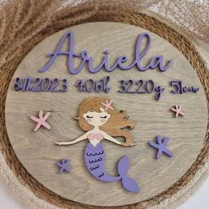 Personalizirana tabla morska deklica Debelina: 6mm Izdelana iz kakovostnega lesa, idealna za dekoracijo in trajen spomin. Opozorilo: Izdelek ni igrača, namenjen je izključno dekoraciji. Z njim ravnajte previdno. Les je naravni materijal zato barve in izdelki lahko odstopajo od izdelkov na sliki in niso razlog za reklamacijo. Čas izdelave: 5 - 10 delovnih dni