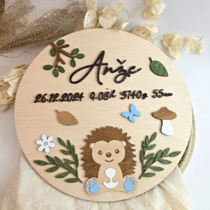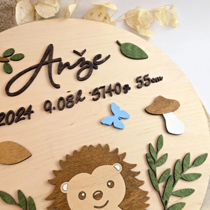 Personalizirana tabla ježek Debelina: 6mm Izdelana iz kakovostnega lesa, idealna za dekoracijo in trajen spomin. Opozorilo: Izdelek ni igrača, namenjen je izključno dekoraciji. Z njim ravnajte previdno. Les je naravni materijal zato barve in izdelki lahko odstopajo od izdelkov na sliki in niso razlog za reklamacijo. Čas izdelave: 5 – 10 delovnih dni