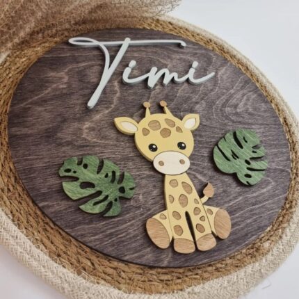 Personalizirana tabla žirafa Debelina: 6mm Izdelana iz kakovostnega lesa, idealna za dekoracijo in trajen spomin. Opozorilo: Izdelek ni igrača, namenjen je izključno dekoraciji. Z njim ravnajte previdno. Les je naravni materijal zato barve in izdelki lahko odstopajo od izdelkov na sliki in niso razlog za reklamacijo. Čas izdelave: 5 – 10 delovnih dni