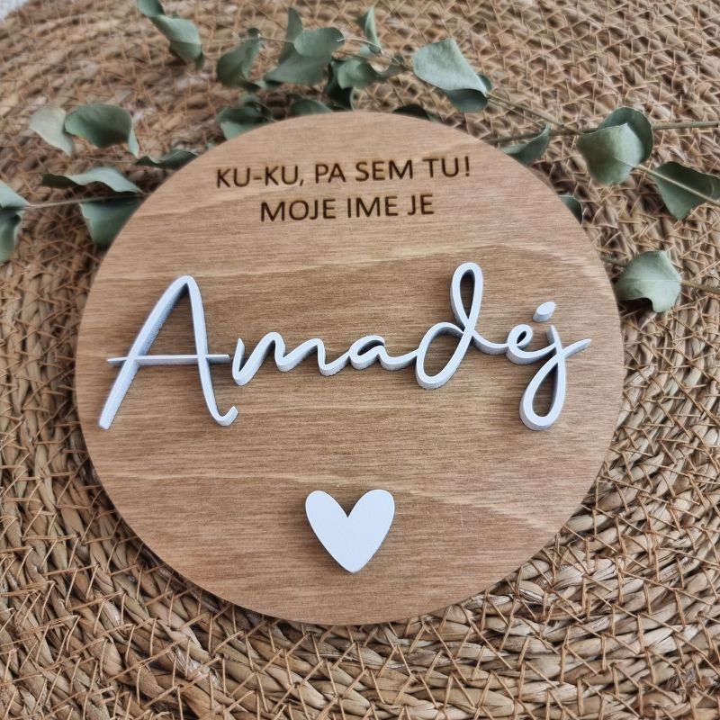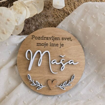 3D personalizirana lesena oznanitvena kartica ob rojstvu otroka.